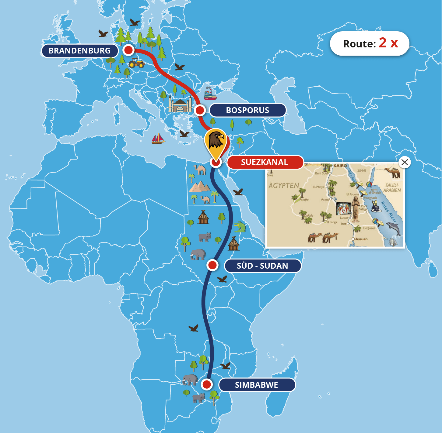 Begleiten Sie die Adler auf dem gefährlichen Weg über Simbabwe, Ägypten, den Suezkanal, den Bosporus bis hin zu seinen Brutrevieren in Brandenburg und Pommern.