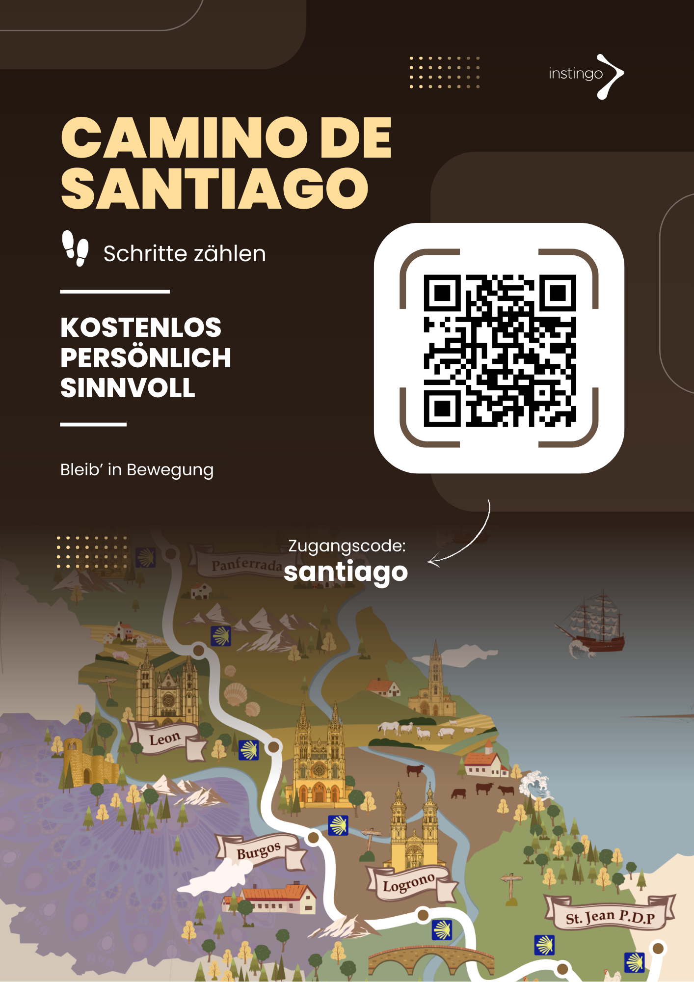 Starte mit deinem Team die Camino de Santiago Challenge: Erlebt den berühmten Jakobsweg digital, stärkt Gesundheit, Motivation und Teamzusammenhalt. Jetzt entdecken mit instingo!